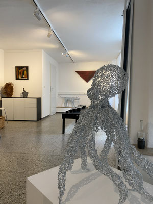 Bilder von Günther Ebenbeck,Drahtskulpturen von Vasilij Plotnikov und